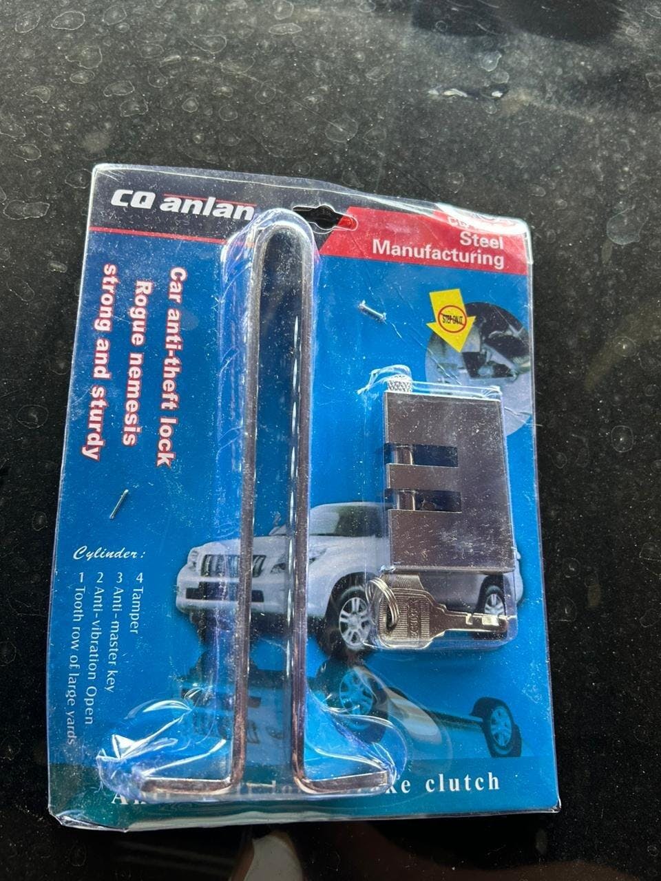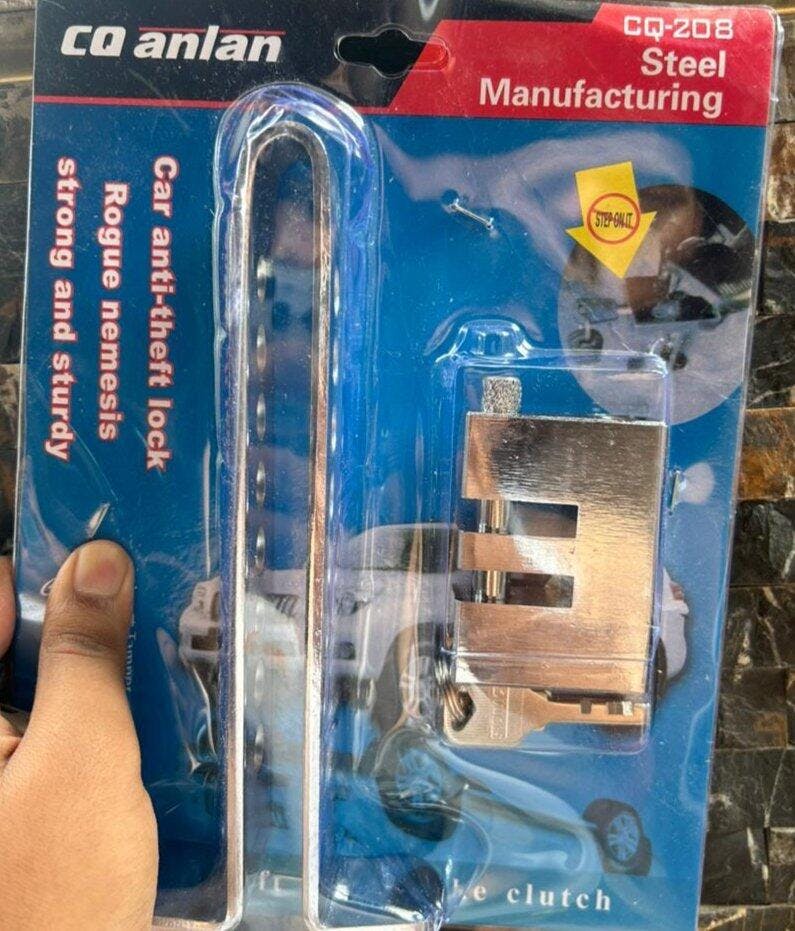 protect your vehicle with this solid stainless-steel pedal lock. it fits most pakistani cars like SUZUKI, ALTO , HONDA CITY, TOYOTA COROLLA, KIA SPORTAGE etc. for all cars with 8 adjustable positions and a tamper-proof design this lock keeps your vehicle secure from unauthorized access.